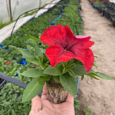 Петунія SUCCESS! 360° Red — це рання великоквіткова однорічна петунія (грандіфлора) з кулястою формою куща, що швидко розростається. Сорт відрізняється яскраво-червоними квітками (10 см), високою стійкістю до температурних стресів і хвороб. Ідеально підходить для контейнерів, підвісних кашпо та клумб.   Основні характеристики: Тип: Однорічна, великоквіткова грандіфлора (Grandiflora). Цвітіння: Дуже раннє та рясне, починається у травні–червні та триває до осені. Розмір квітки: Великі, діаметром до 10с м . Габітус (форма куща): Кулястий, компактний (висота3 0- -3 5с м , ширина залежить від умов, але кущ густогіллястий). Стійкість: Висока стійкість до стресових погодних умов, генетично компактна. Освітлення: Світлолюбна, найкраще цвіте на сонячних місцях. Цей сорт формує "шапку" з квітів, тому виглядає розкішно у вазонах на балконах та в садових композиціях.