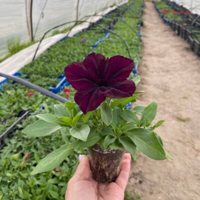 Петунія гібридна серії SUCCESS! 360° Burgundy(від Benary) — це високопродуктивна грандіфлора з раннім цвітінням (на 7-10 днів раніше аналогів). Створює компактні, густі кущі (33 см у висоту, 28 см завширшки), ідеальні для горщиків та підвісних кошиків. Відрізняється глибоким бургундським кольором, стійкістю до негоди та швидким відновленням. Основні характеристики: Тип: Петунія гібридна крупноквіткова (grandiflora), серія «360°» (швидке заповнення горщика). Колір: Насичений бордовий (Burgundy), можливі варіації з темнішими прожилками (Burgundy Vein). Розмір куща: Висота 25–33 см, ширина 28–70 см (кущі дуже гіллясті, не потребують прищипування). Цвітіння: Надзвичайно рясне, починається рано (травень-червень) і триває до заморозків. Розмір квітки: Великі, діаметром 6–10 см. Стійкість: Висока стійкість до температурних стресів, дощу та вітру, чудово почувається у щільних посадках. Використання: Підвісні кошики, контейнери, балконні ящики, озеленення клумб. Вимоги: Потребує світла, тепла та регулярного поливу, віддає перевагу родючим, легким ґрунтам.
