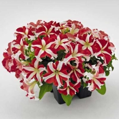 Петунія великоквіткова (grandiflora) серії SUCCESS! Red Star — це ранній, компактний гібрид (висота 30-35 см) з рясним цвітінням великими, червоно-білими квітками (до 10 см). Ідеальна для контейнерів, горщиків та клумб завдяки стійкості до негоди, щільності куща та цвітінню з червня по вересень. Основні характеристики: Тип: великоквіткова (grandiflora), кущова. Забарвлення: червоне з білою зіркою. Висота рослини: 33–35 см. Розмір квітки: великі, близько 10 см у діаметрі. Цвітіння: рясне та дружне, починається рано (червень–вересень). Особливості: генетично компактна, не витягується, відмінно виглядає у щільних посадках. Використання: горщики, балконні ящики, клумби. Серія SUCCESS! характеризується стійкістю до температурних стресів та пластичністю до умов вирощування.