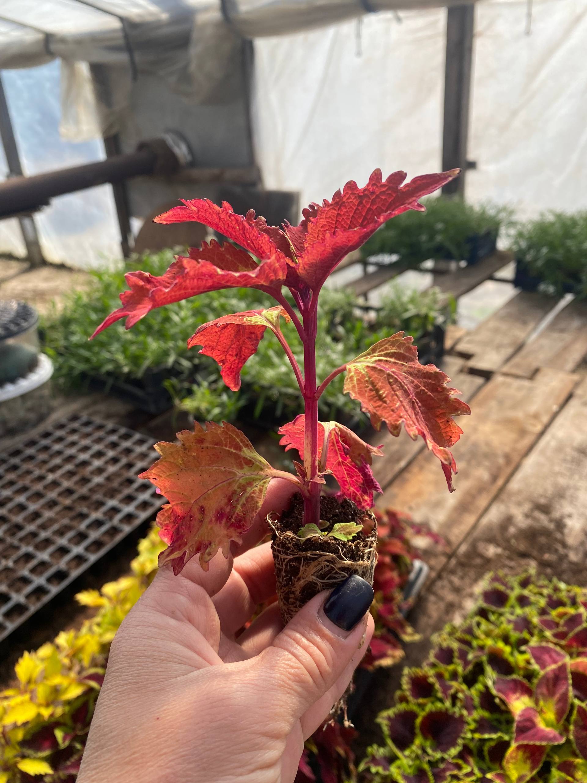 - Зовнішній вигляд: Має яскраве мідно-помаранчеве листя з сильно зазубреними краями. По всій поверхні листка можуть зустрічатися вкраплення рожевого та зеленого кольорів.